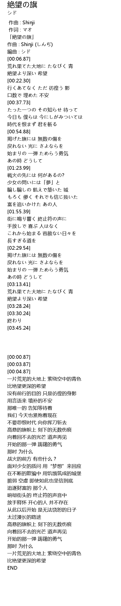 | [00:00.87] | 「絶望の旗」 |