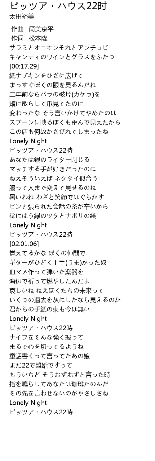 | [01:41.67] | ピンと張られた会話の糸が辛いから |