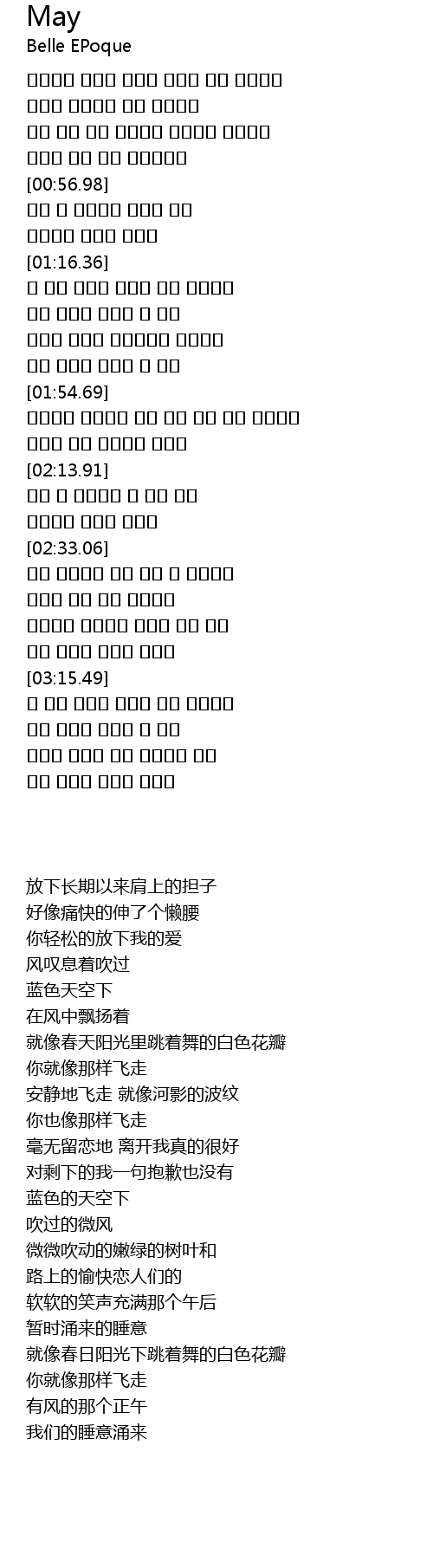 | [00:38.72] | 너는 나의 사랑 내려놓고 홀가분한 마음으로 |