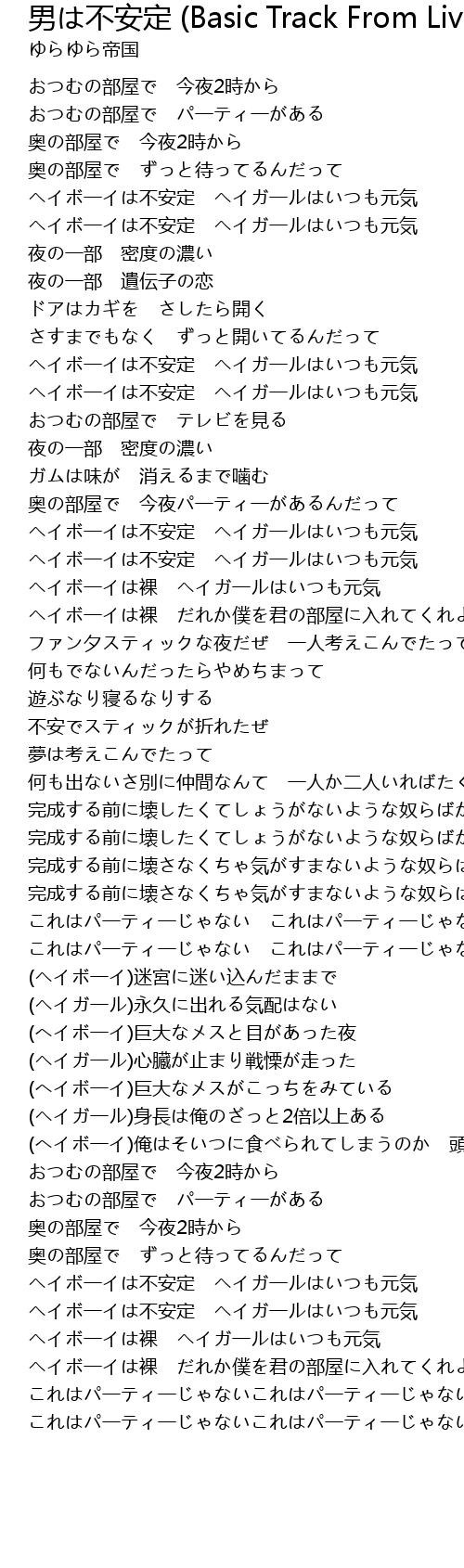 | [00:41.24] | ヘイボ一イは不安定 ヘイガ一ルはいつも元気 |
