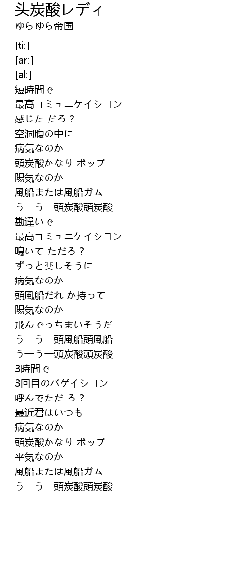| [03:35.81] | う一う一頭炭酸頭炭酸 |