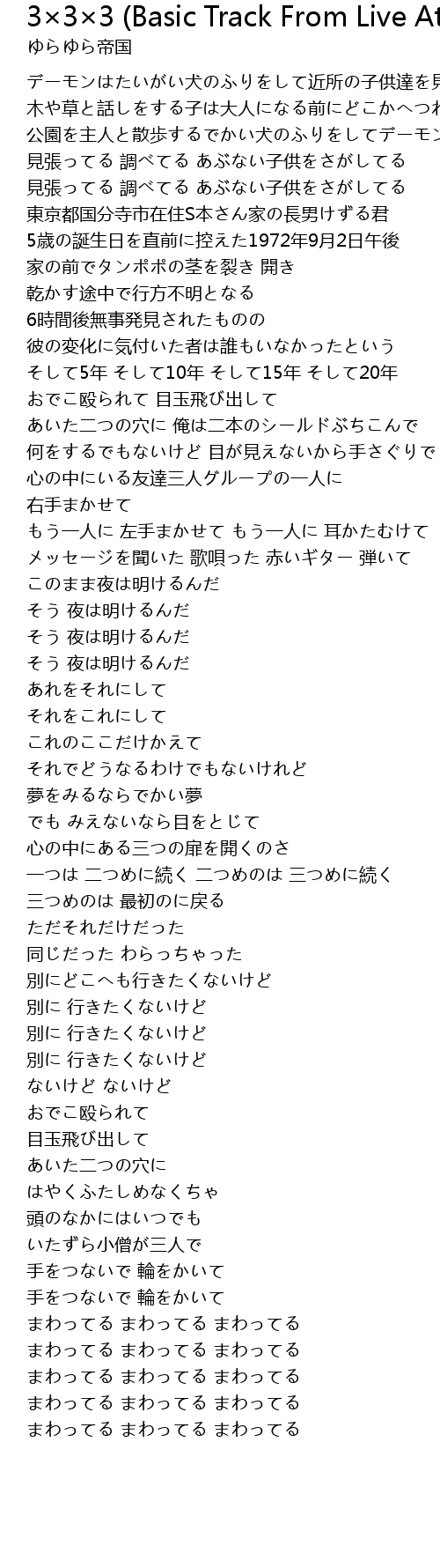 | [03:05.88] | 一つは 二つめに続く 二つめのは 三つめに続く |