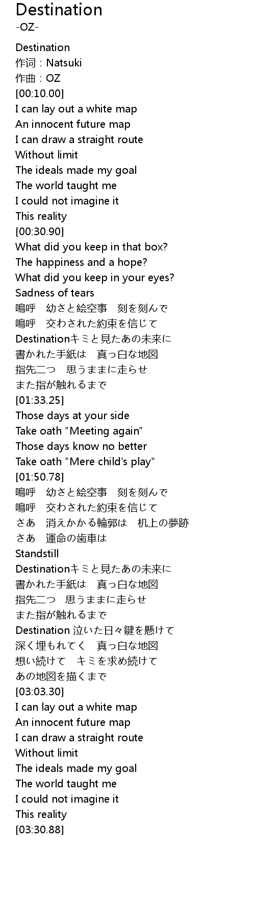 | [00:00.00] | Destination |