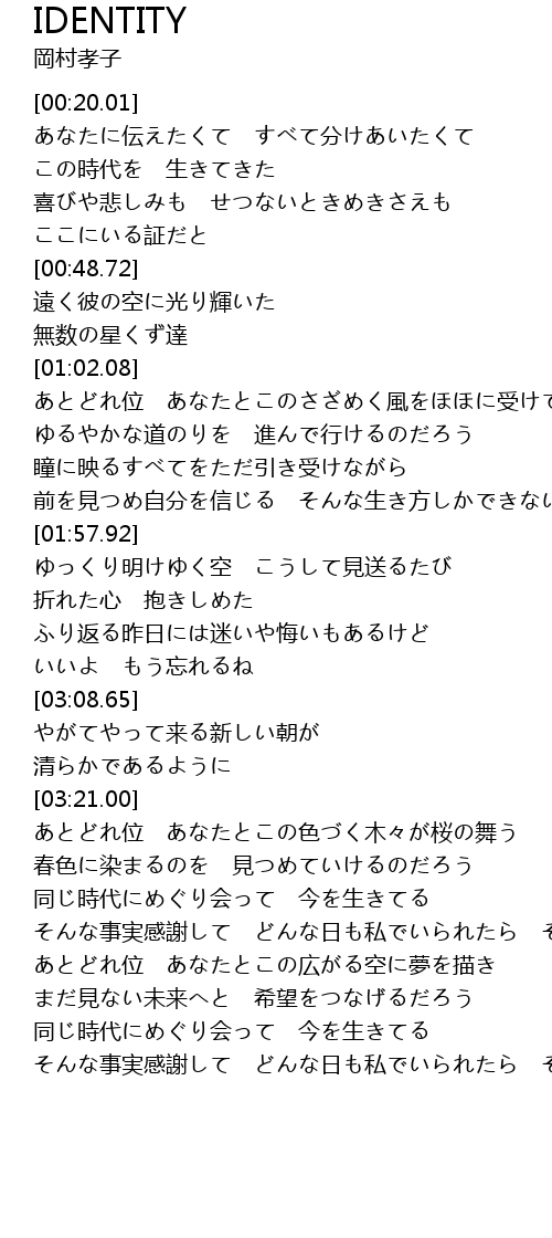 | [03:58.80] | そんな事実感謝して どんな日も私でいられたら それが幸せ |