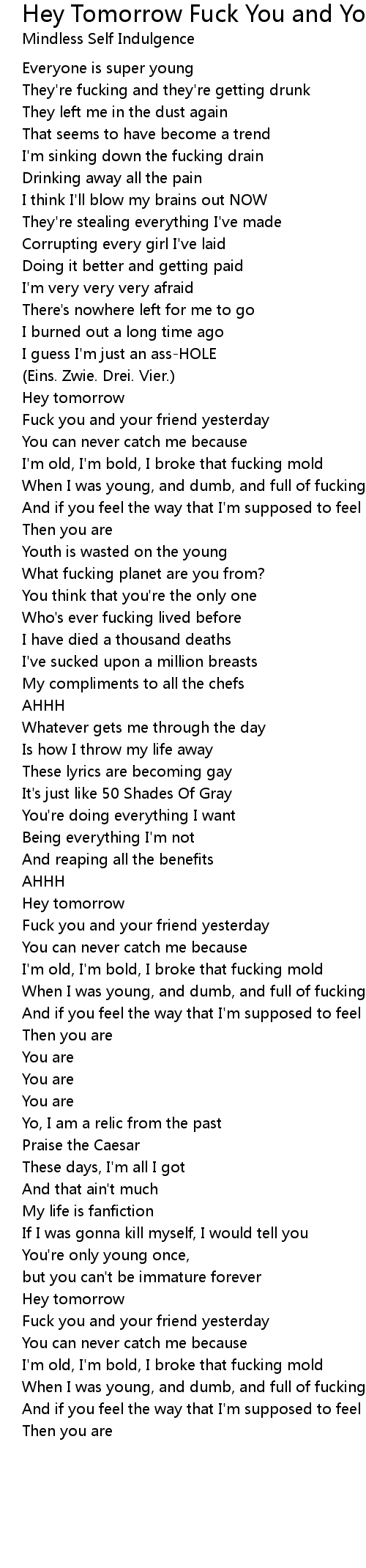 Song Hey Tomorrow Fuck You and Your Friend Yesterday