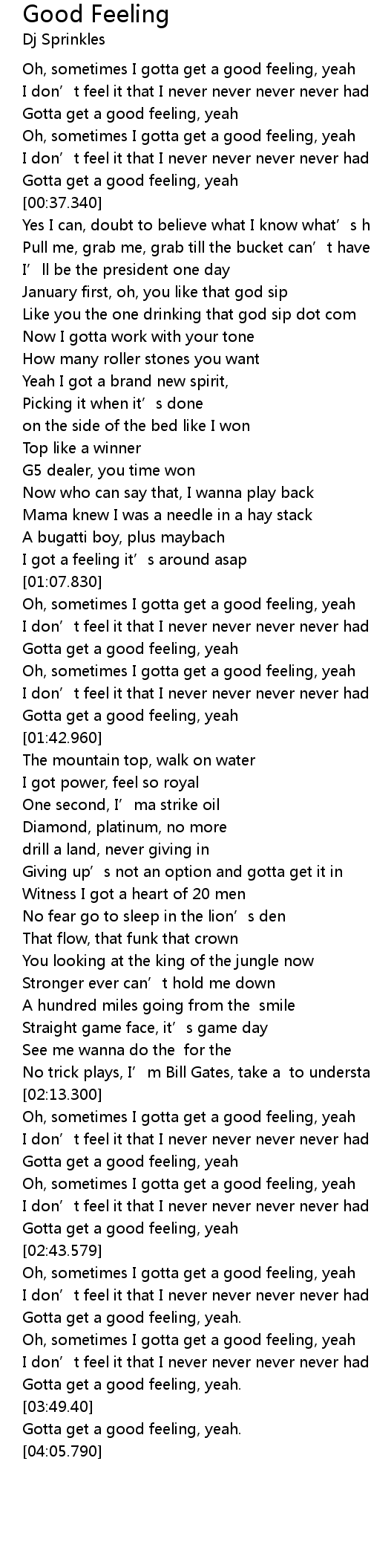 | [00:06.700] | Oh, sometimes I gotta get a good feeling, yeah |