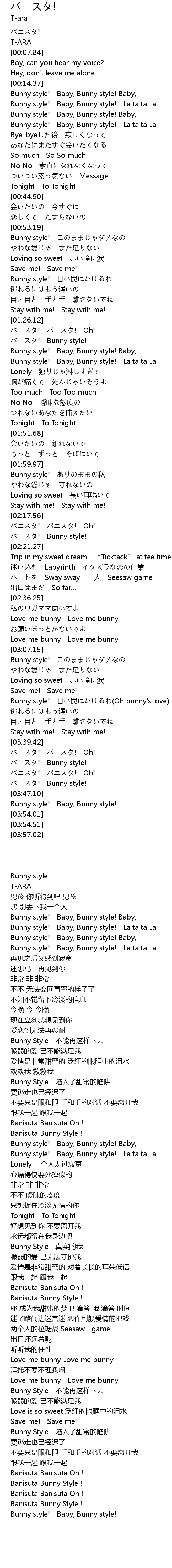 | [01:33.60] | Bunny style! Baby, Bunny style! La ta ta La |