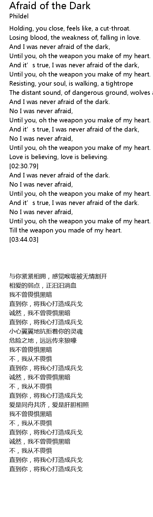 | [03:18.88] | And it’s true, I was never afraid of the dark. |