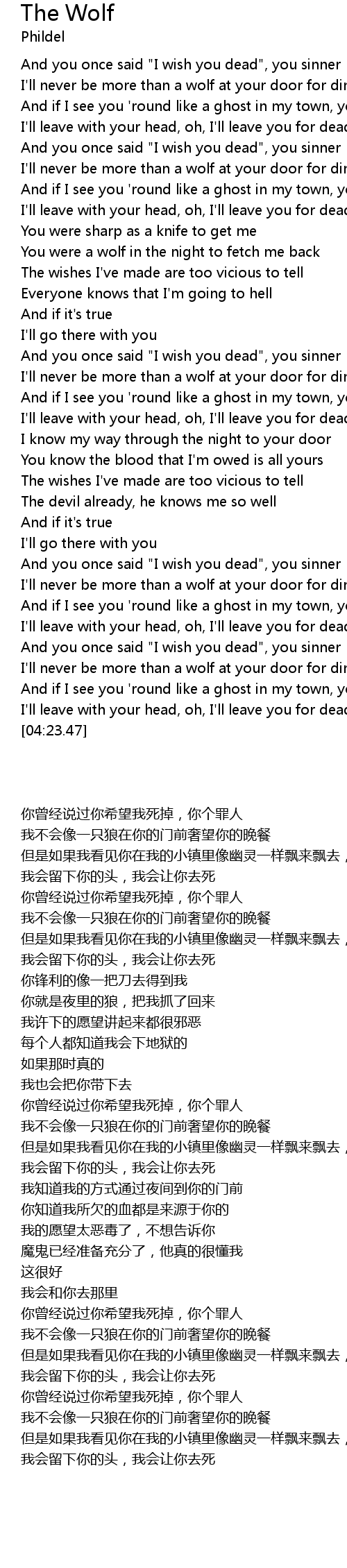And you once said "I wish you dead", you sinner |