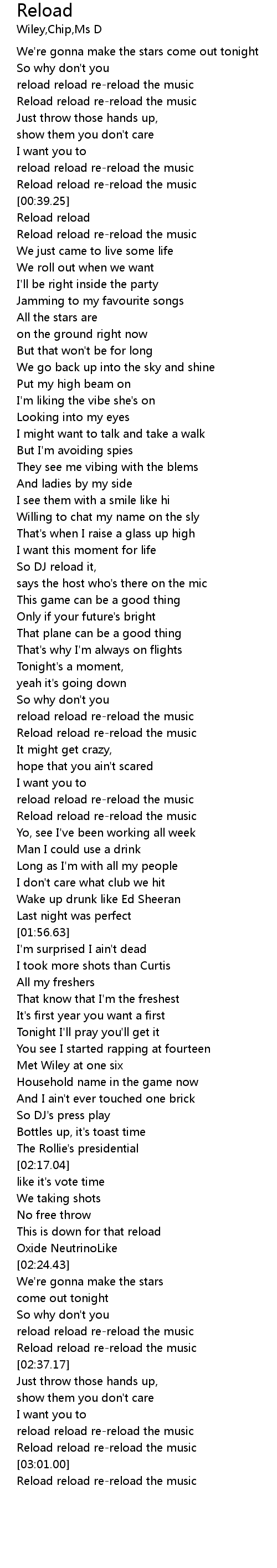 | [02:57.37] | Reload reload re-reload the music |