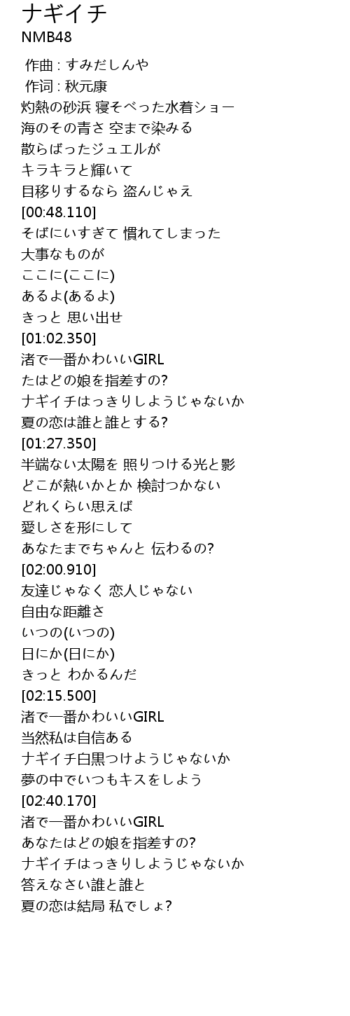 | [01:03.350] | 渚で一番かわいいGIRL |