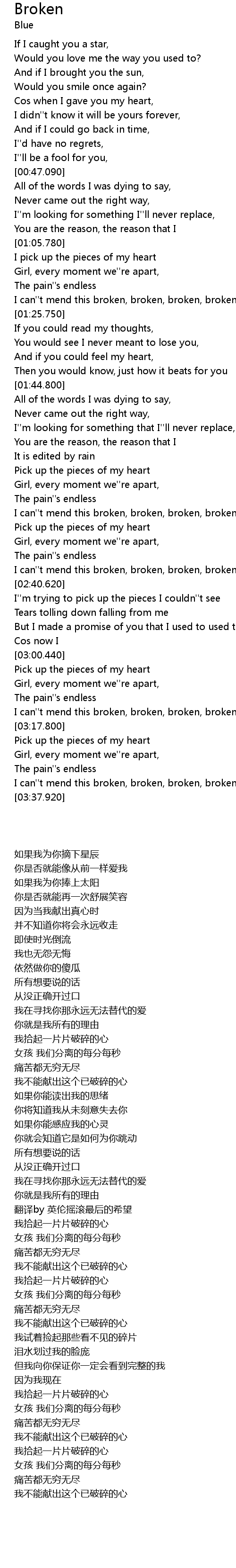 I can''t mend this broken, broken, broken, broken heart |