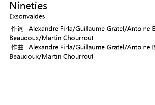 | [00:00.000] | zuo qu : Alexandre Firla Guillaume Gratel Antoine Bernard Simon Beaudoux Martin Chourrout |