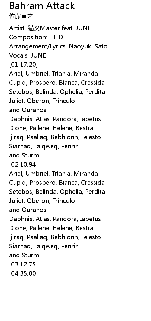 | [01:29.60] | Ariel, Umbriel, Titania, Miranda |