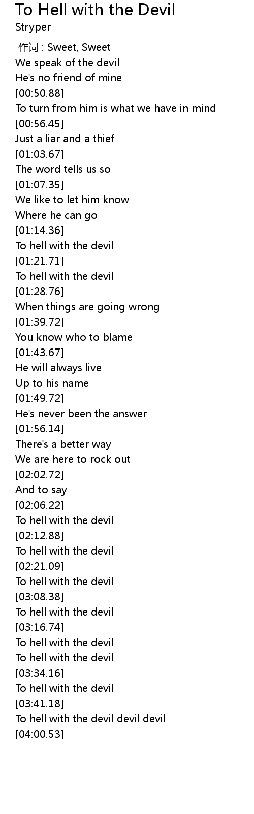 | [01:23.84] | To hell with the devil |