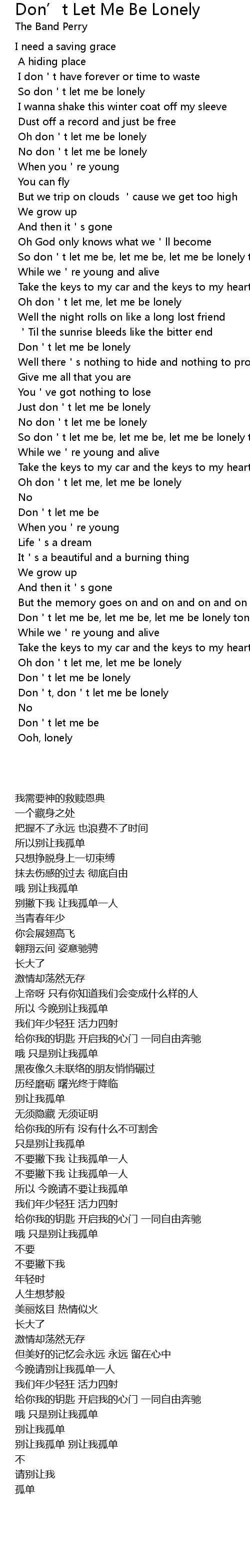 | [02:27.340] | Oh don't let me, let me be lonely |