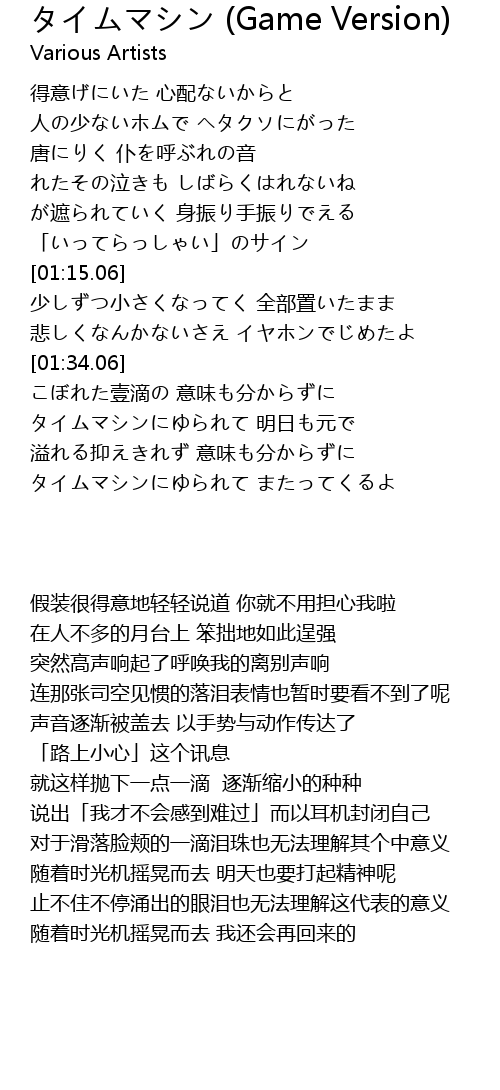 | [02:10.11] | タイムマシンにゆられて 明日も元で |