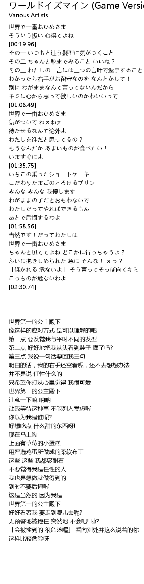 | [00:55.62] | 别に わがままなんて言ってないんだから |
