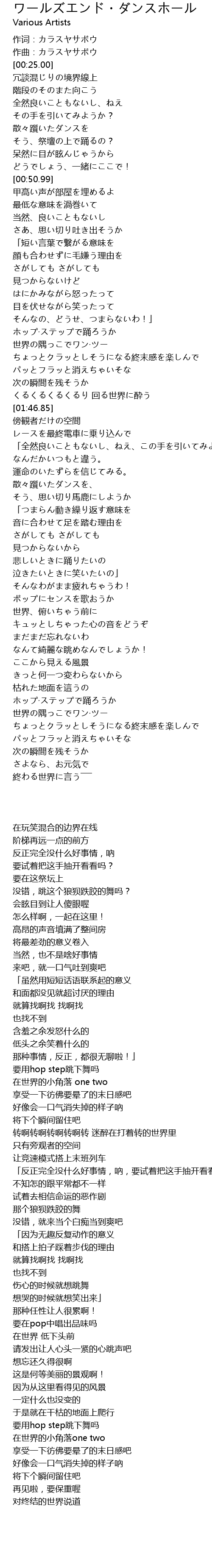 | [01:29.63] | ちょっとクラッとしそうになる終末感を楽しんで |