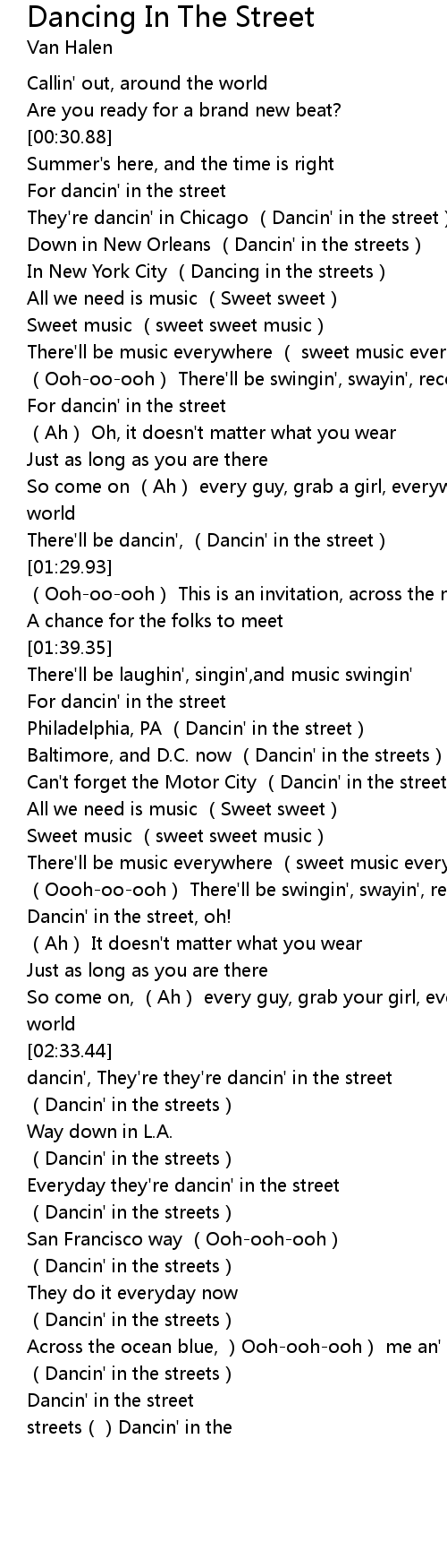| [03:30.28] | (Dancin' in the streets) |