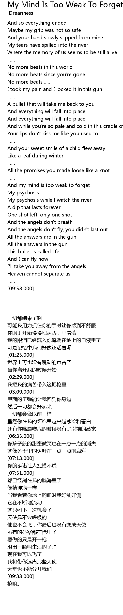 | [02:17.000] | No more beats in this world |