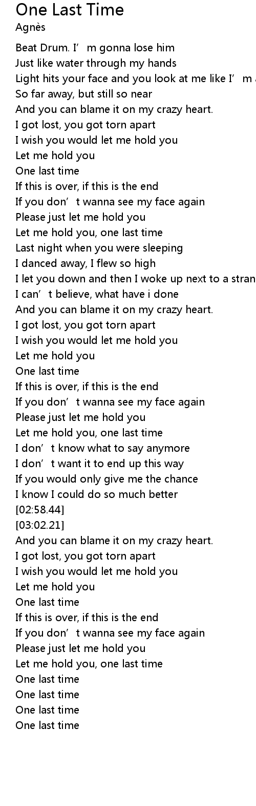 | [03:03.34] | And you can blame it on my crazy heart. |