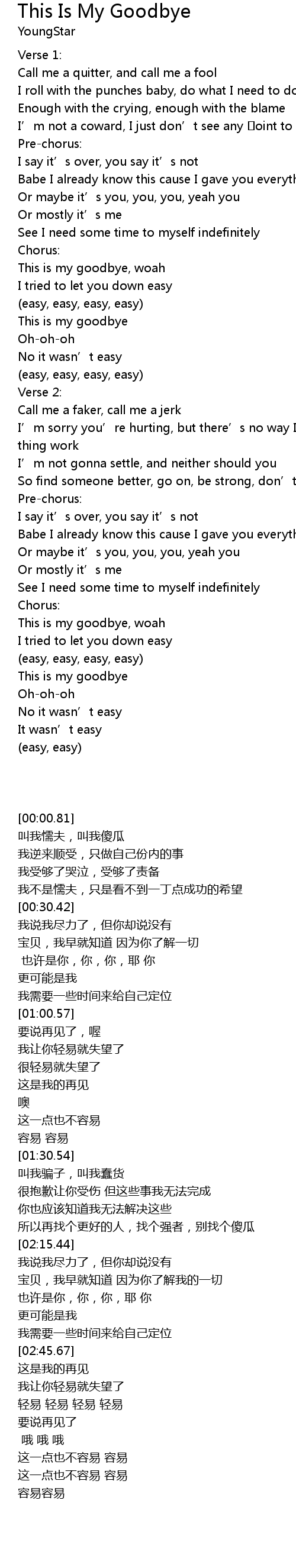 | [03:01.00] | This is my goodbye |