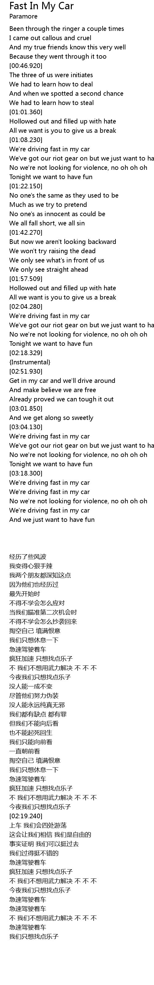 | [03:22.990] | We're driving fast in my car |