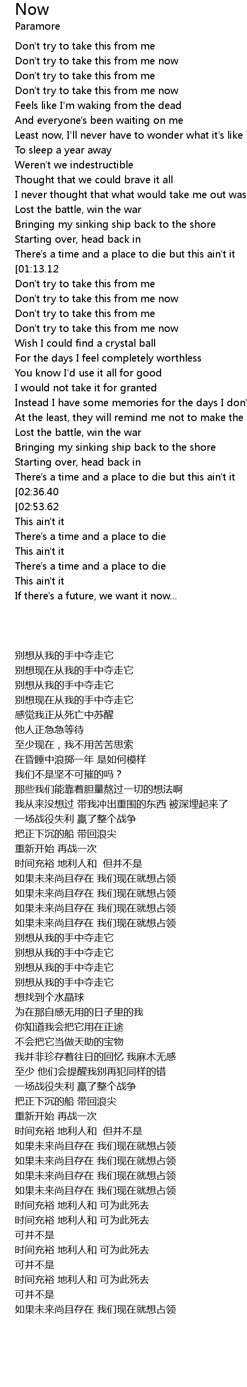 | [02:42.07][02:36.40][02:30.18][02:24.41] | If there's a future, we want it now |