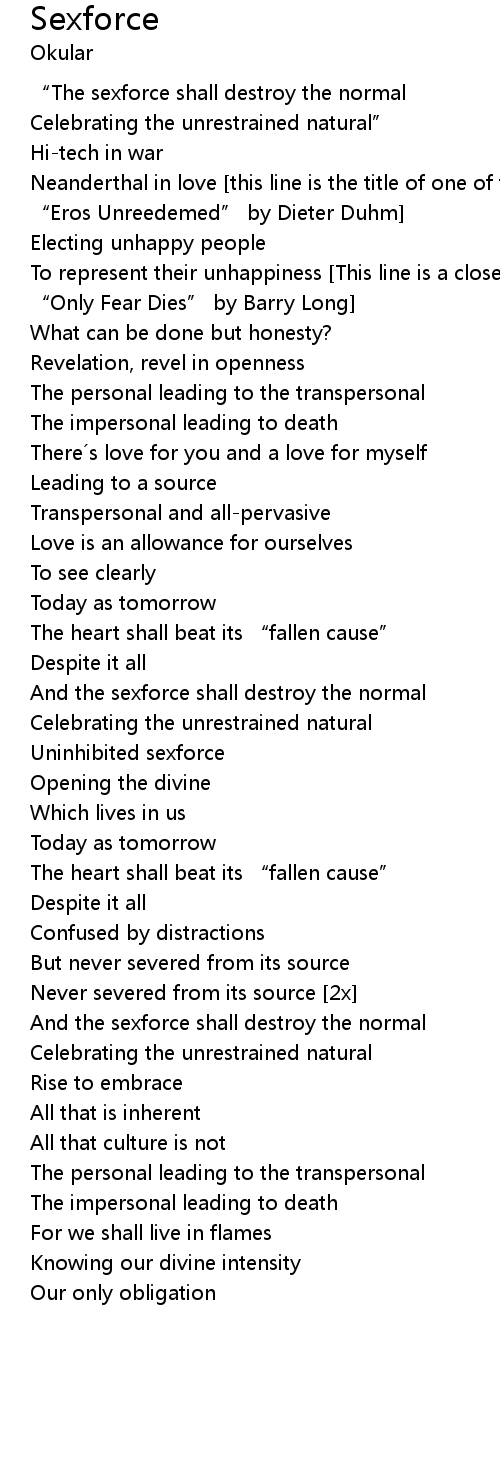 | “The sexforce shall destroy the normal | |