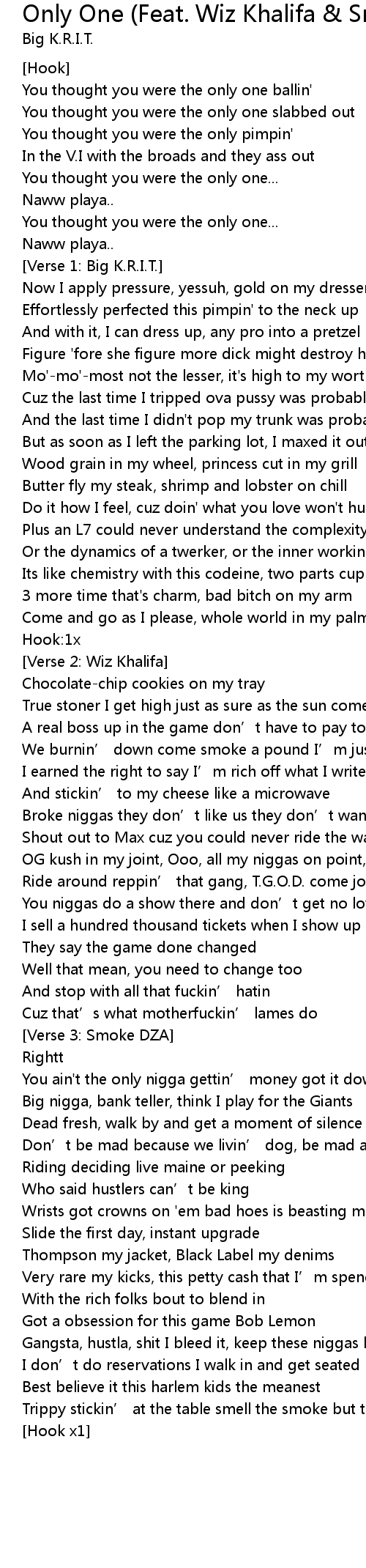 | Song | Only One (Feat. Wiz Khalifa & Smoke DZA) [Prod. By Big K.R.I.T.] |