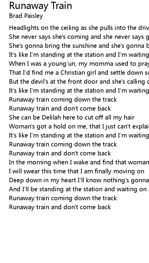 It's like I'm standing at the station and I'm waiting on a runaway train |