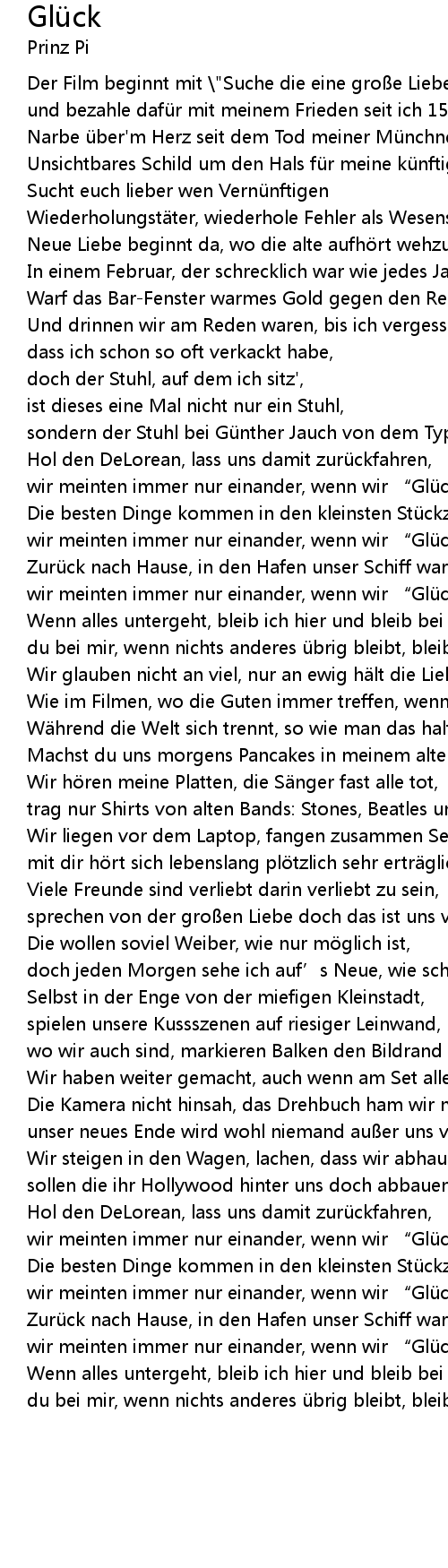 | wir meinten immer nur einander, wenn wir “Glück” sagten | |