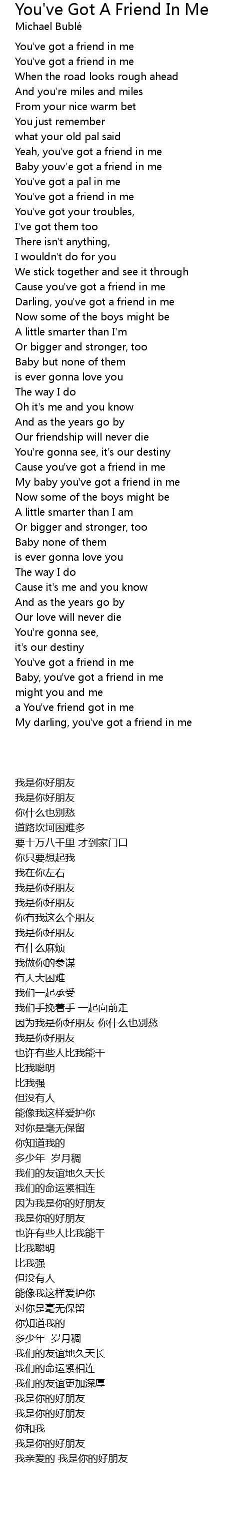 Baby, you've got a friend in me |