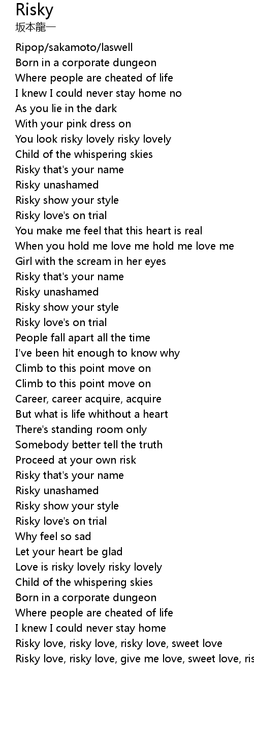 | Risky love, risky love, give me love, sweet love, risky love, risky love |