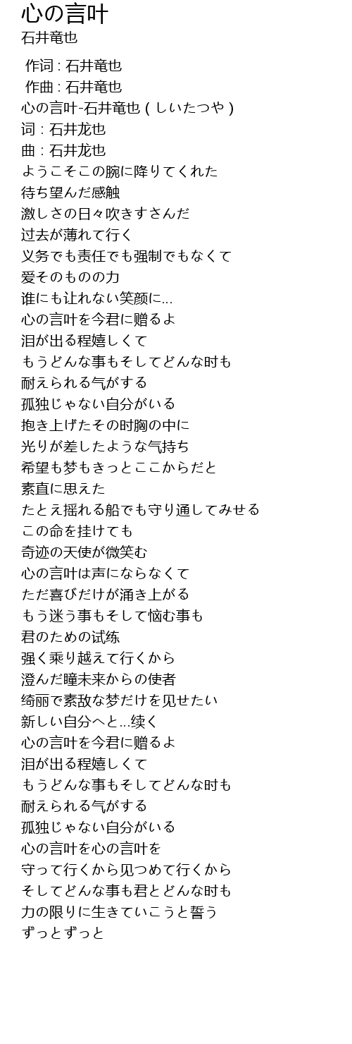 | [00:00.00] | 心の言叶-石井竜也(しいたつや) |