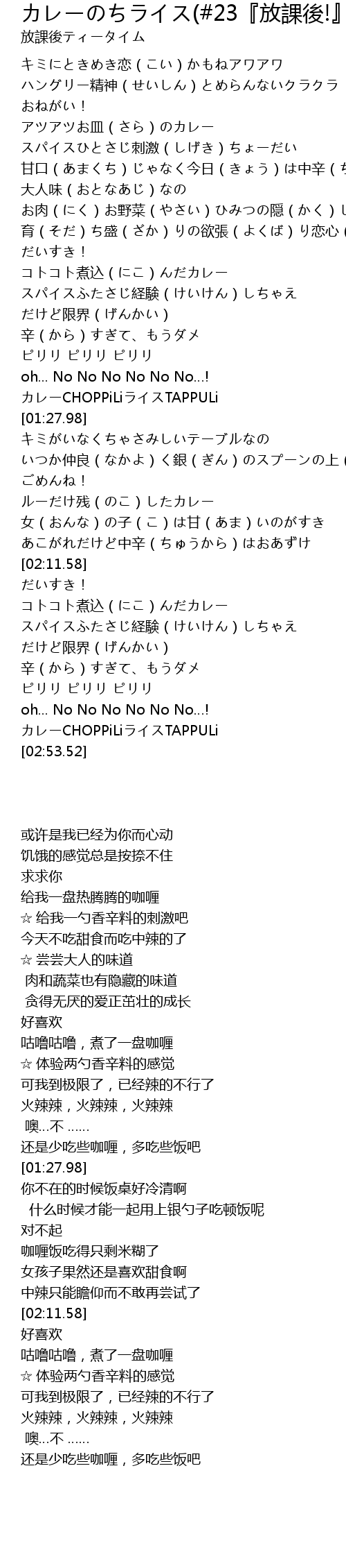 | [01:23.87] | カレーCHOPPiLiライスTAPPULi |