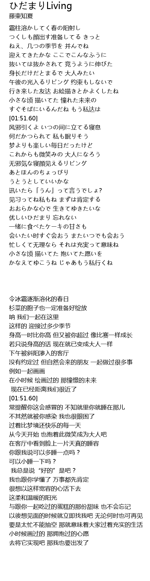 | [01:10.36] | 午後の光入るリビング 约束もしないで |