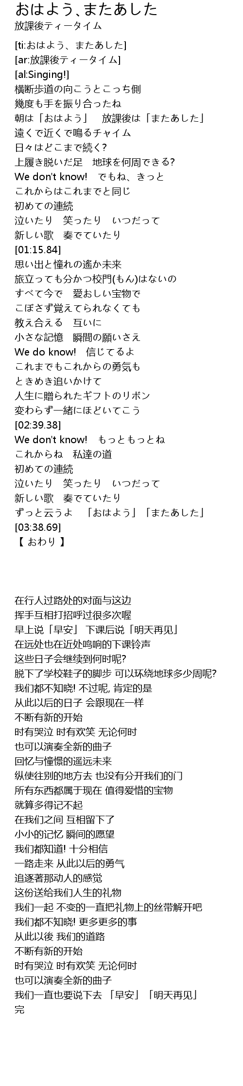 | [00:14.24] | 朝は「おはよう」 放課後は「またあした」 |