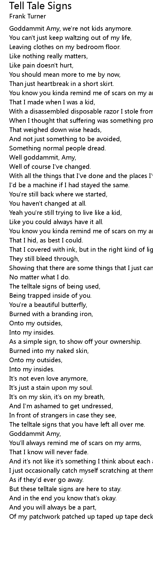Tell Tale Signs Lyrics
