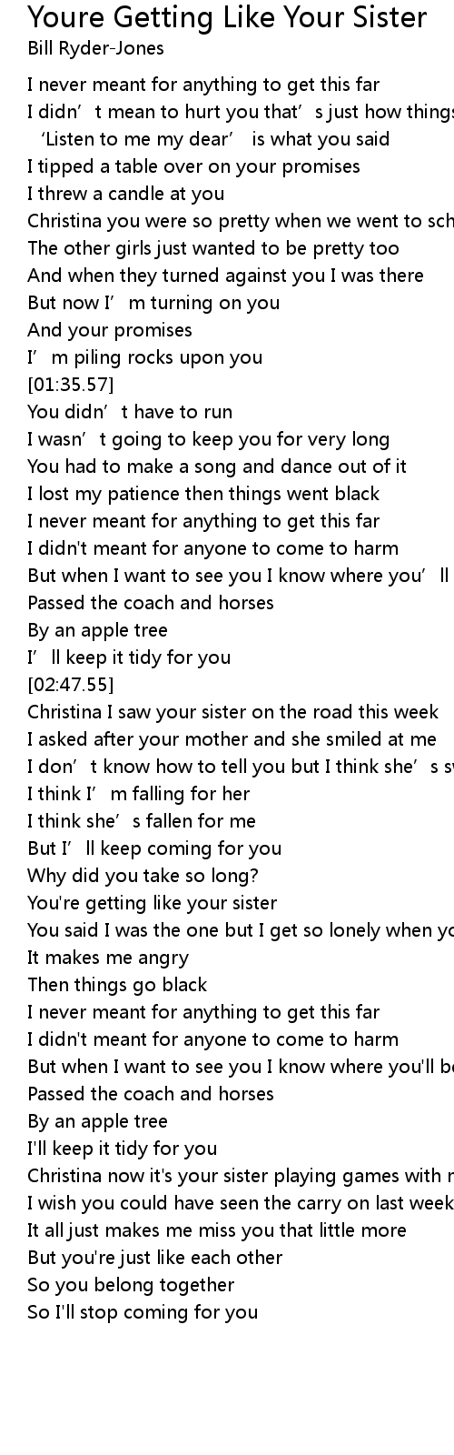 | [03:16.51] | Christina I saw your sister on the road this week |