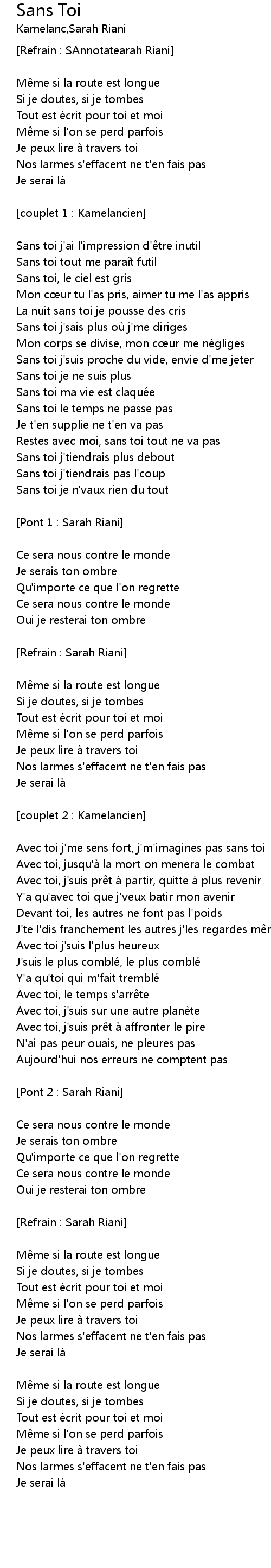 | Avec toi j' me sens fort, j' m' imagines pas sans toi | |