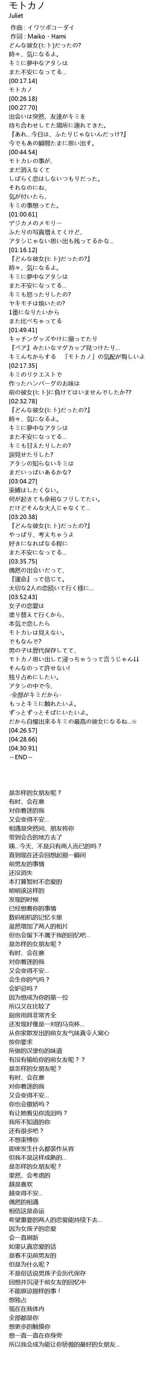 | [00:18.53] | モトカノ |
