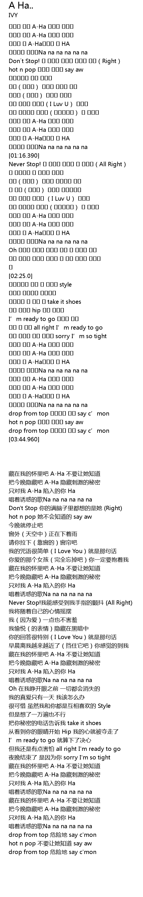 | [02:51.970] | 이밤을 숨겨 A-Ha 비밀은 짜릿해 |