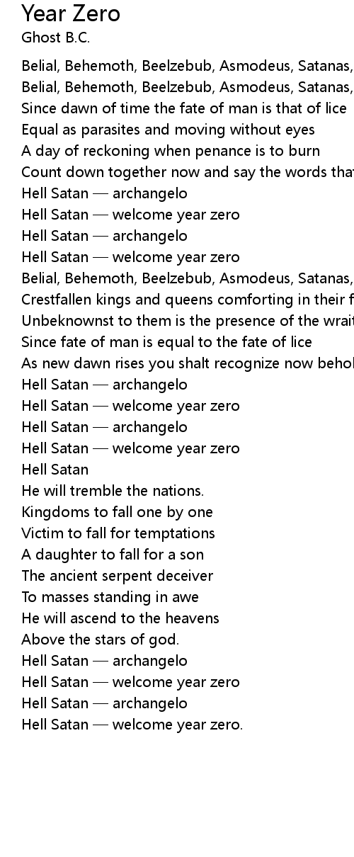 | Belial, Behemoth, Beelzebub, Asmodeus, Satanas, Lucifer | |