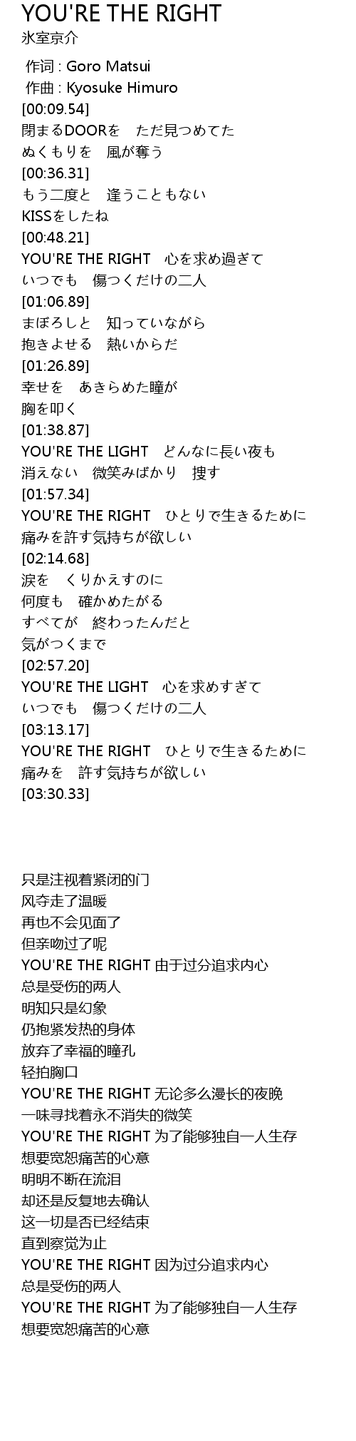 | [03:14.37] | YOU' RE THE RIGHT sheng |