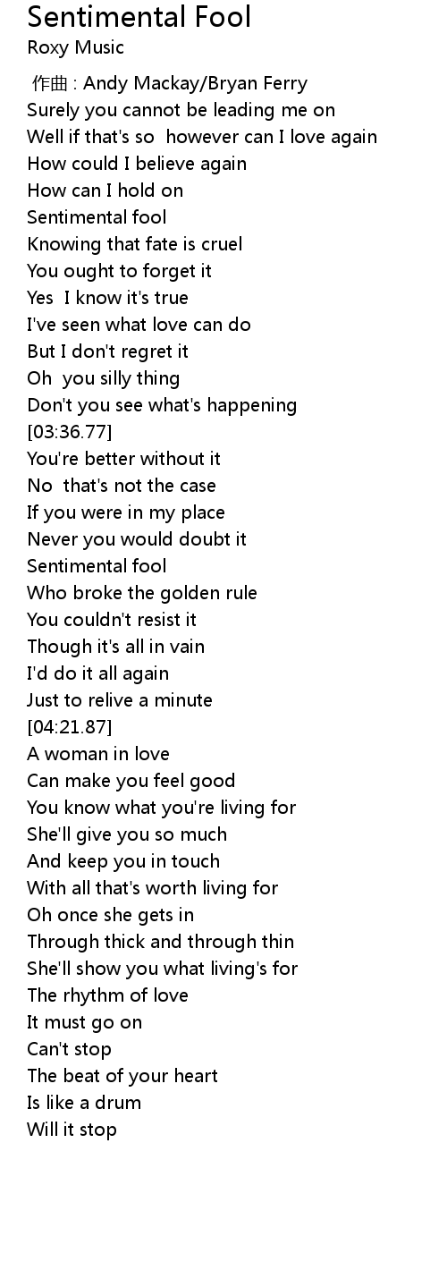 | [00:00.00] | zuo qu : Andy Mackay Bryan Ferry |
