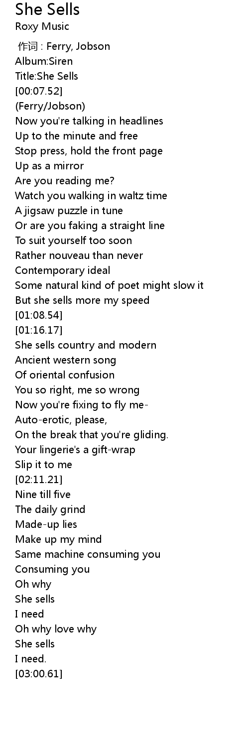 | [00:00.00] | 作词 : Ferry, Jobson |