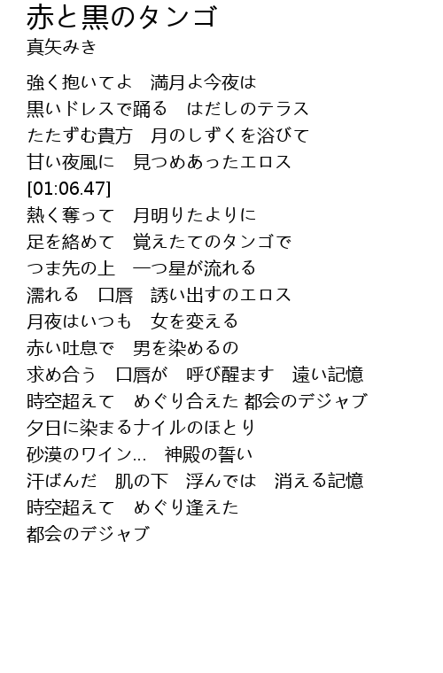 | [00:57.16] | 甘い夜風に 見つめあったエロス |