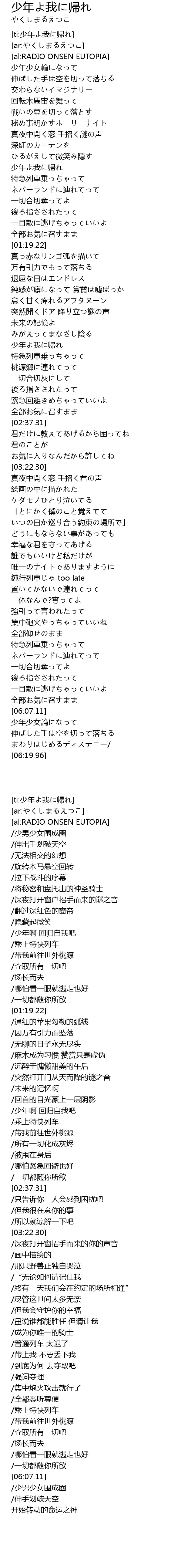| [04:24.51] | いつの日か巡り合う約束の場所で」 |